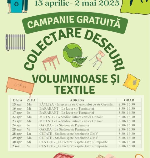 A ÎNCEPUT CAMPANIA GRATUITĂ DE COLECTARE A DEȘEURILOR VOLUMINOASE ȘI TEXTILE MENAJERE