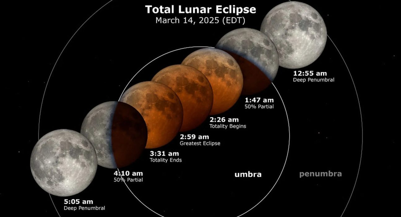 Micșorați: Eclipsa totală de Lună din martie este ultima care va fi vizibilă în Statele Unite în acest an.
